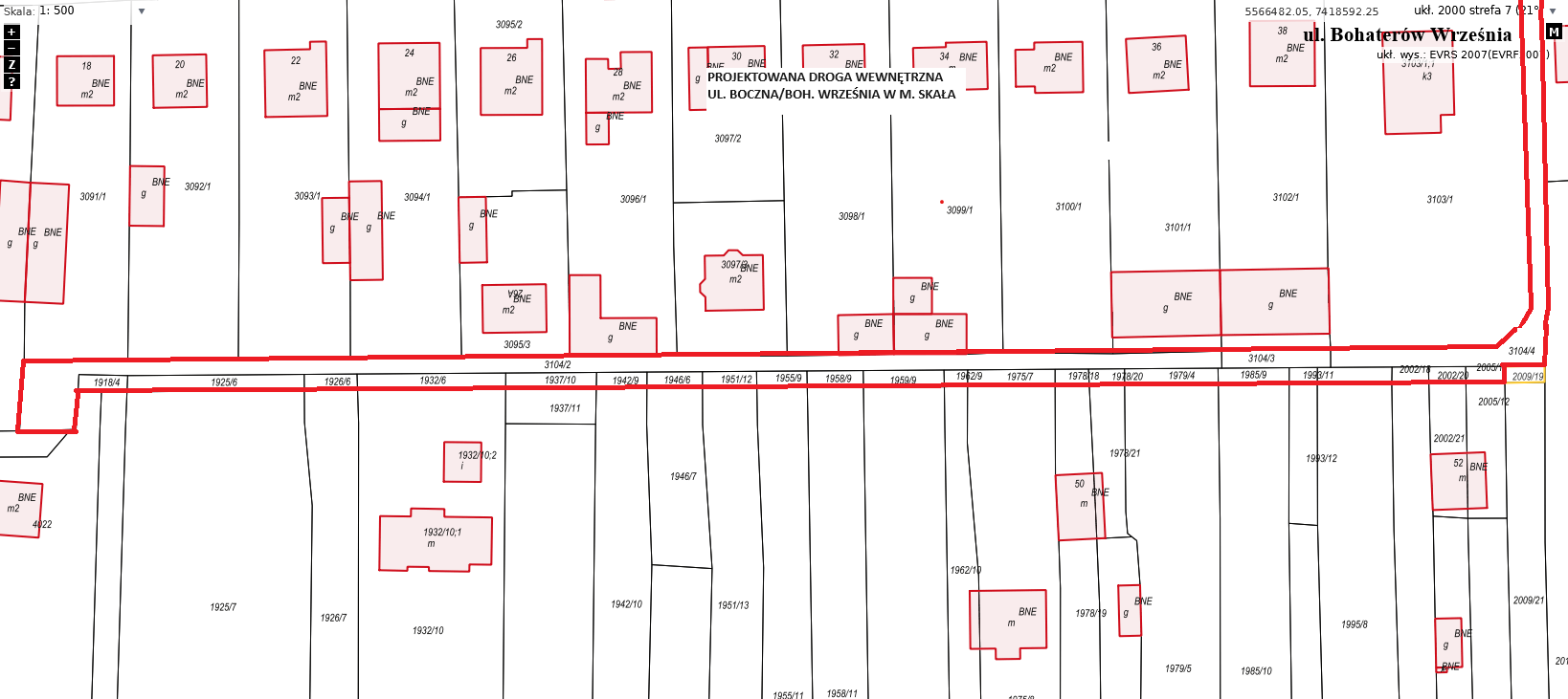 „Wykonanie dokumentacji technicznej na budowę drogi gminnej wewnętrznej „Boczna/Bohaterów Września” w m. Skała, Gmina Skała”, zgodnie z założeniami określonymi poniżej: