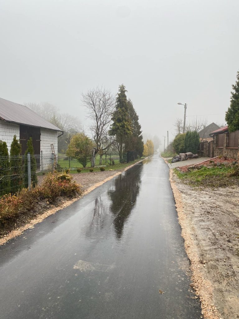 W ramach inwestycji wykonano 90 mb nakładki asfaltowej oraz utwardzone kruszywem pobocza. Celem zadania jest poprawa stanu bezpieczeństwa ruchu drogowego.